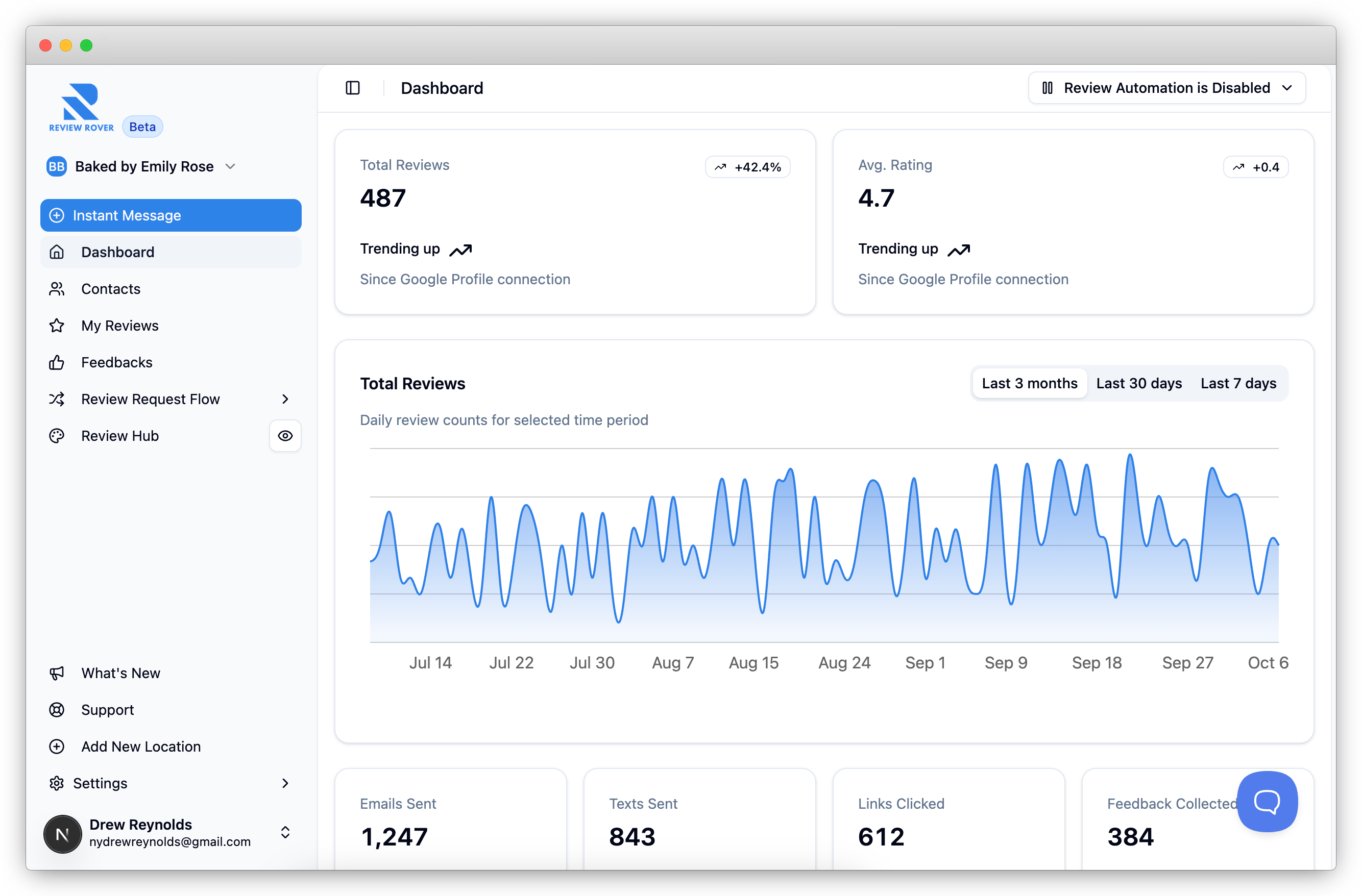 Review Rover helps you collect more Google reviews, manage feedback in one place, and turn happy customers into your best marketing channel.